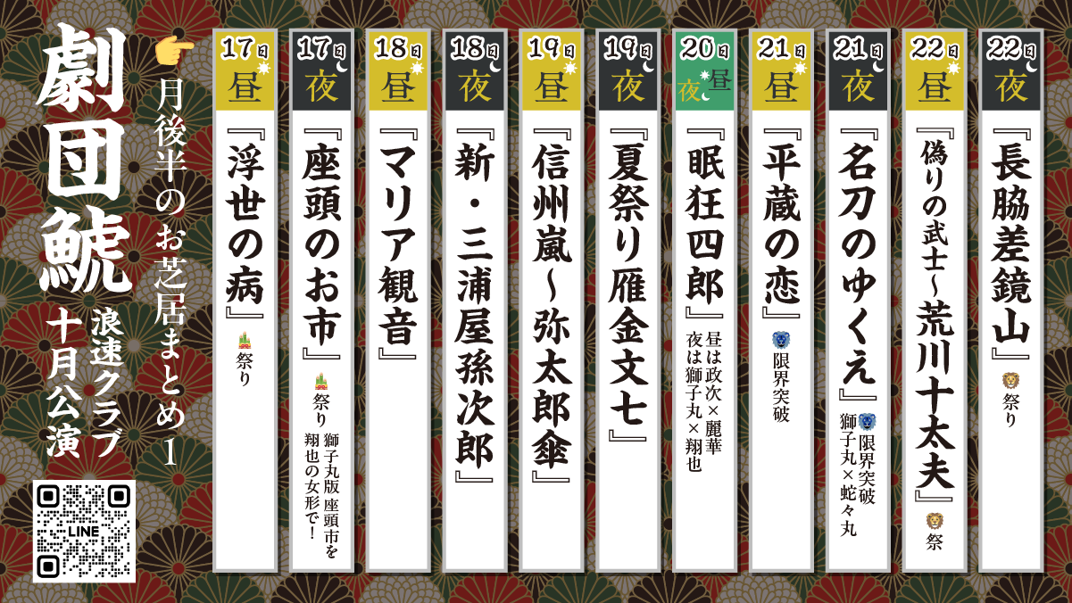毎日の告知は劇団鯱情報局 X (旧Twitter)でご確認ください。
